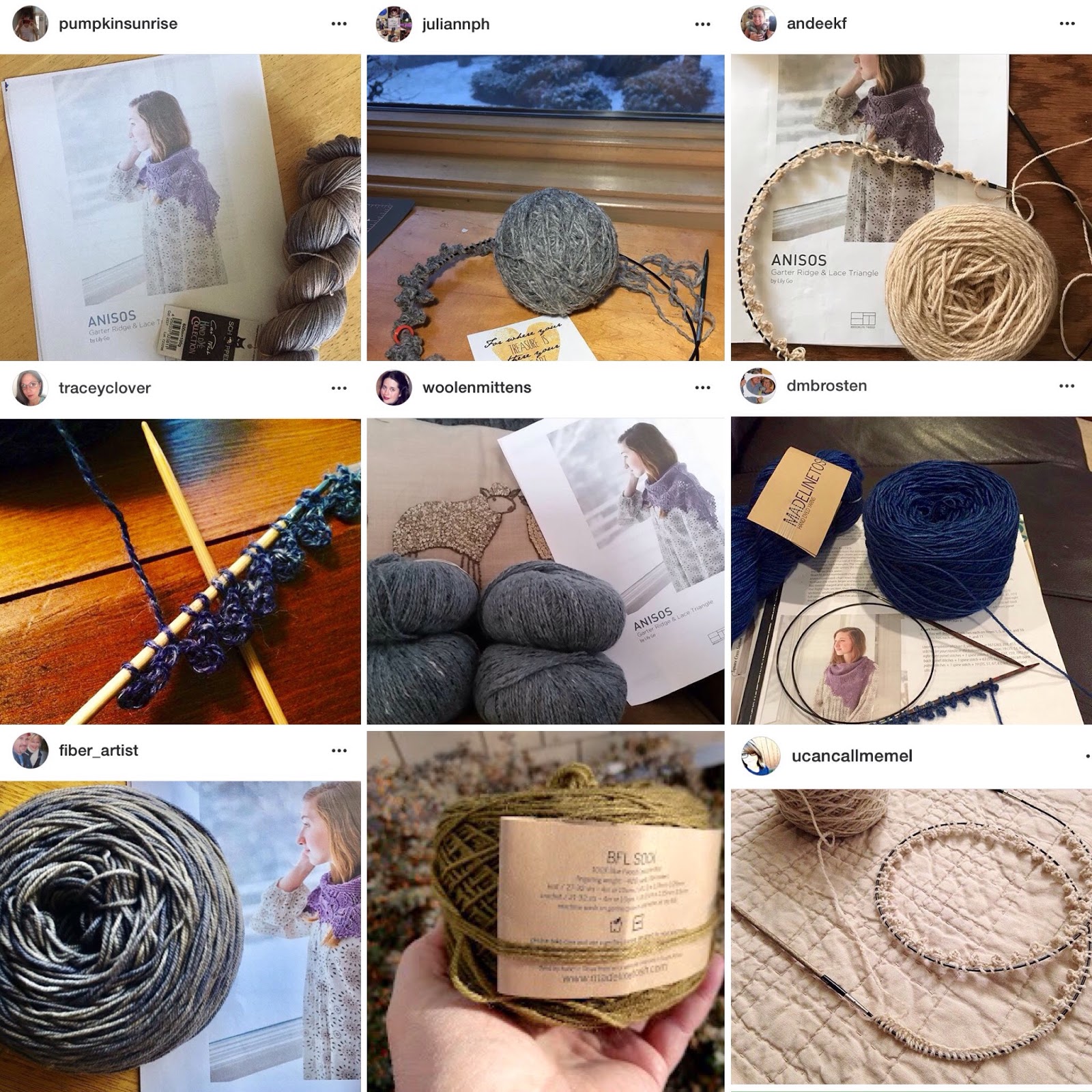 I screen grabbed everyone's latest progress photo from Instagram. I'm going to try and do this periodically, especially if you guys are going to be so good about posting pictures! I love to see where everyone is at and hear how excited you all are to be knitting together. Andrea is bottom center - I don't see that she has an IG account so I'll always add her from her blog posts. The only person missing is Morgen... she has yet to post anywhere (I even checked Ravelry) so I used a placeholder center square until she pops up somewhere to say hello!