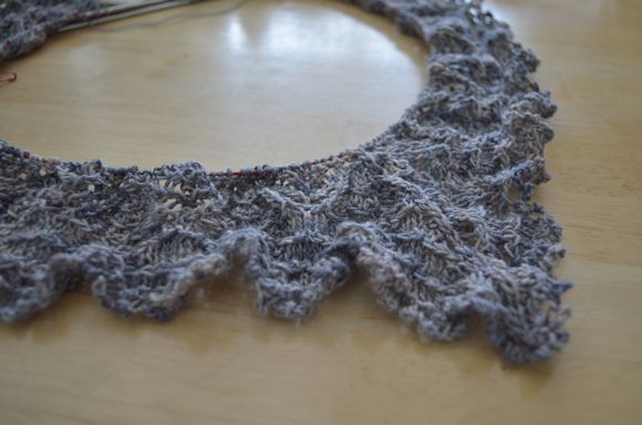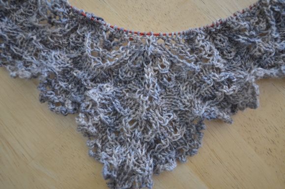 So I humbly present my progress thus far. I have finished both charted sections and just started the body of the shawl. I only knit when I am not paying attention to talking or a really good TV show.